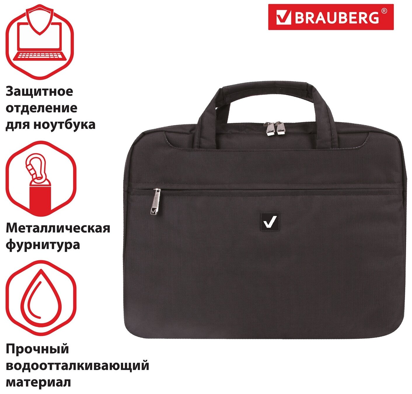 Купить Сумка деловая BRAUBERG с отделением для ноутбука 14", "Chance", 3 кармана, черная, 36х28х5 см, 240455