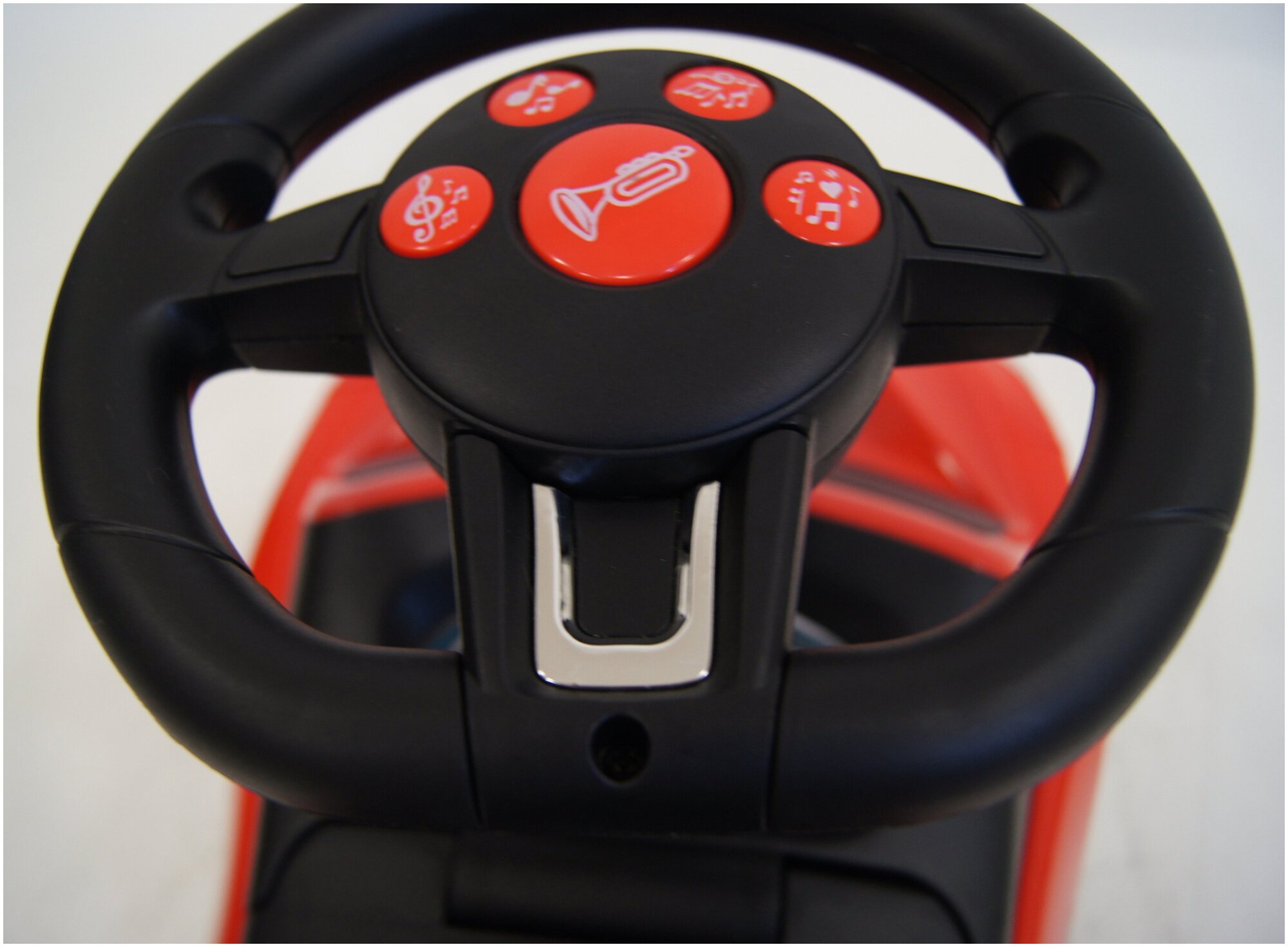 | Минусы: | Купили ребёнку на день рождения , на руле не работает 2 кнопки мелодии , очень расстроились , ребёнок на них нажимает, а музыки нет, работает только основной сигнал . |