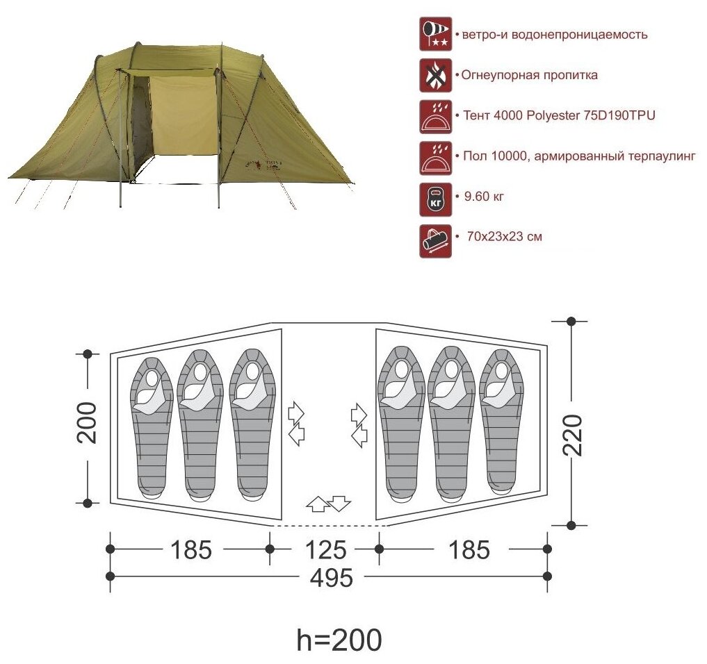 | Водостойкость тента/дна | 4000 / 10000 мм в.ст. |