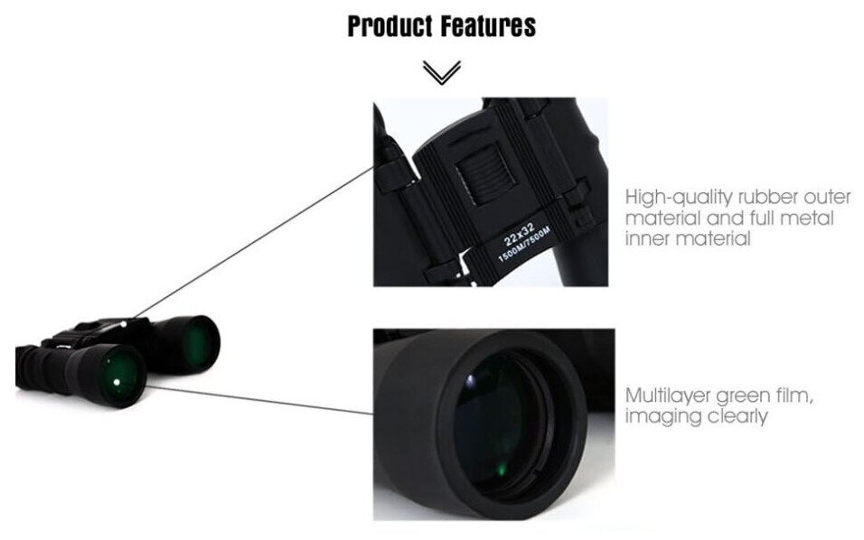 Бинокль складной высокой мощности GoodBinoculars Compact Pro 22х32 + чехол, противоударный, пылевлагозащищённый, обрезиненный корпус интересное: