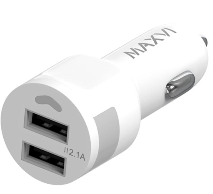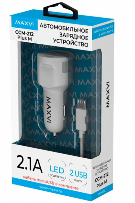 Автомобильное зарядное устройство MAXVI CCM-212 Plus M 2.1A, 2xUSB, кабель microUSB, белый