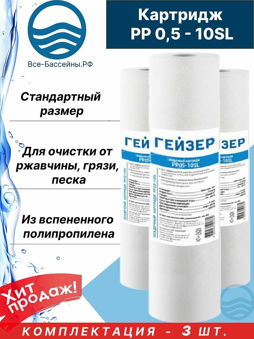 Полипропиленовые картриджи механической очистки Гейзер PP 0,5 - 10SL, 28245 - 3 шт. интересное: