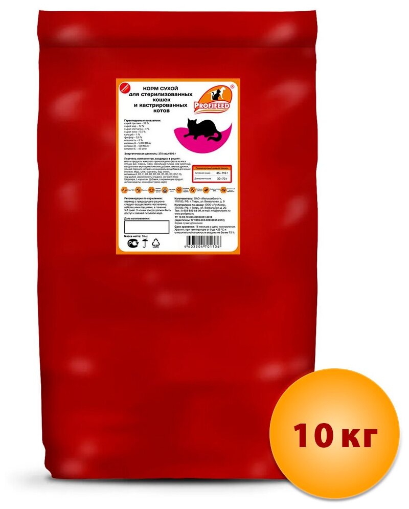 Сухой корм Profifeed для кастрированных котов и стерилизованных кошек, 10 кг