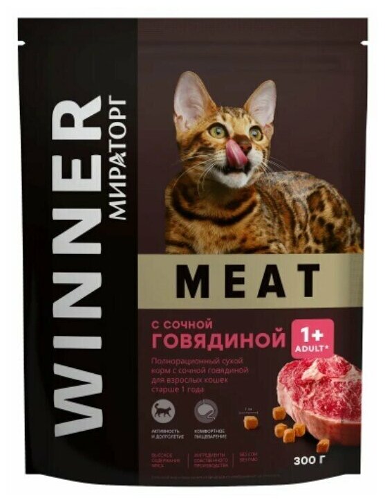 Корм сухой (300 г х 10 штук) Мираторг WINNER MEAT для взрослых кошек старше 1 года с сочной говядиной/ Полнорационный корм для кошек оптом/ Холистик интересное: