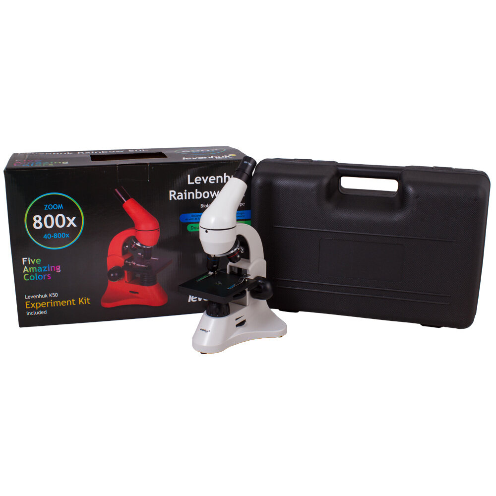 Микроскоп LEVENHUK Rainbow 50L, световой/оптический/биологический, 40-800x, на 3 объектива, красный [69050]