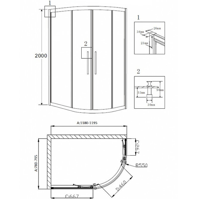 Душевой угол RV-11 Veconi RV11-80K-01-19C1 80*80*185