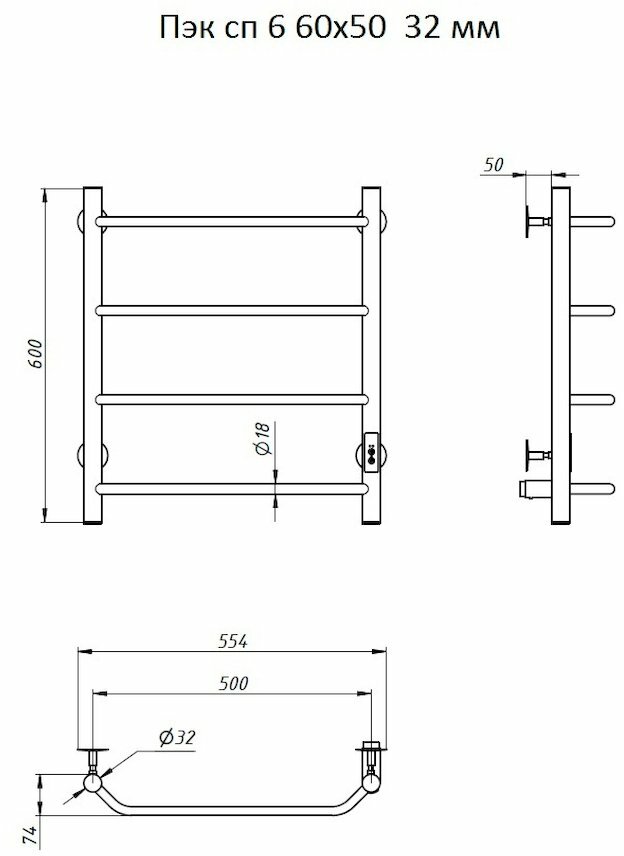 Полотенцесушитель электрический Тругор Пэк сп 6 60х50