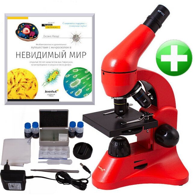 Микроскоп LEVENHUK Rainbow 50L, световой/оптический/биологический, 40-800x, на 3 объектива, красный [69050]