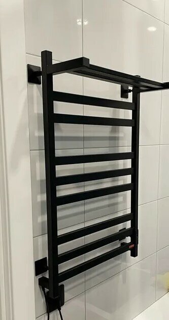 Полотенцесушитель электрический Тругор 500мм 800мм чёрный квадратный, универсальное подключение: слева/справа/скрытое подключение/шнур. интересное: