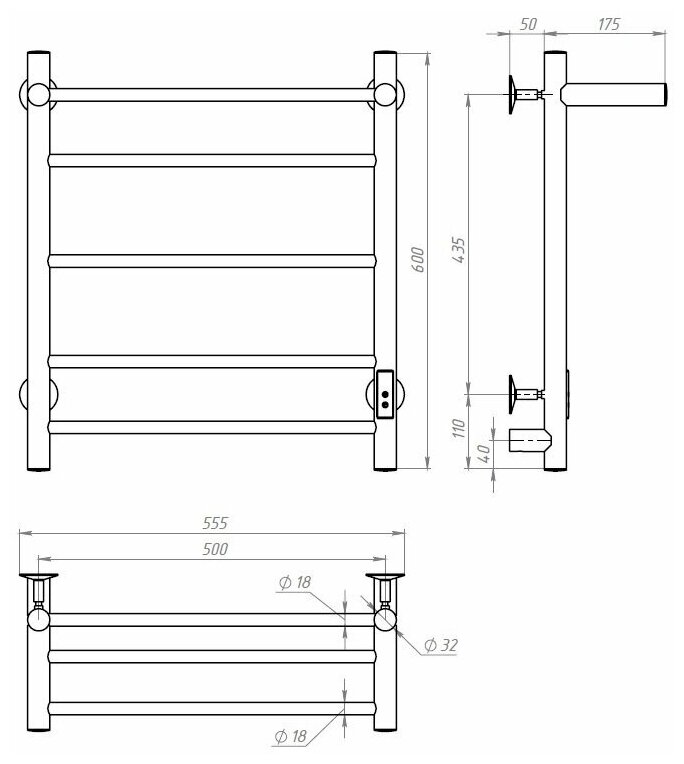 Электрический полотенцесушитель Тругор Аспект Пэк сп серия 3 П 60x50 32 мм универсальный с полкой