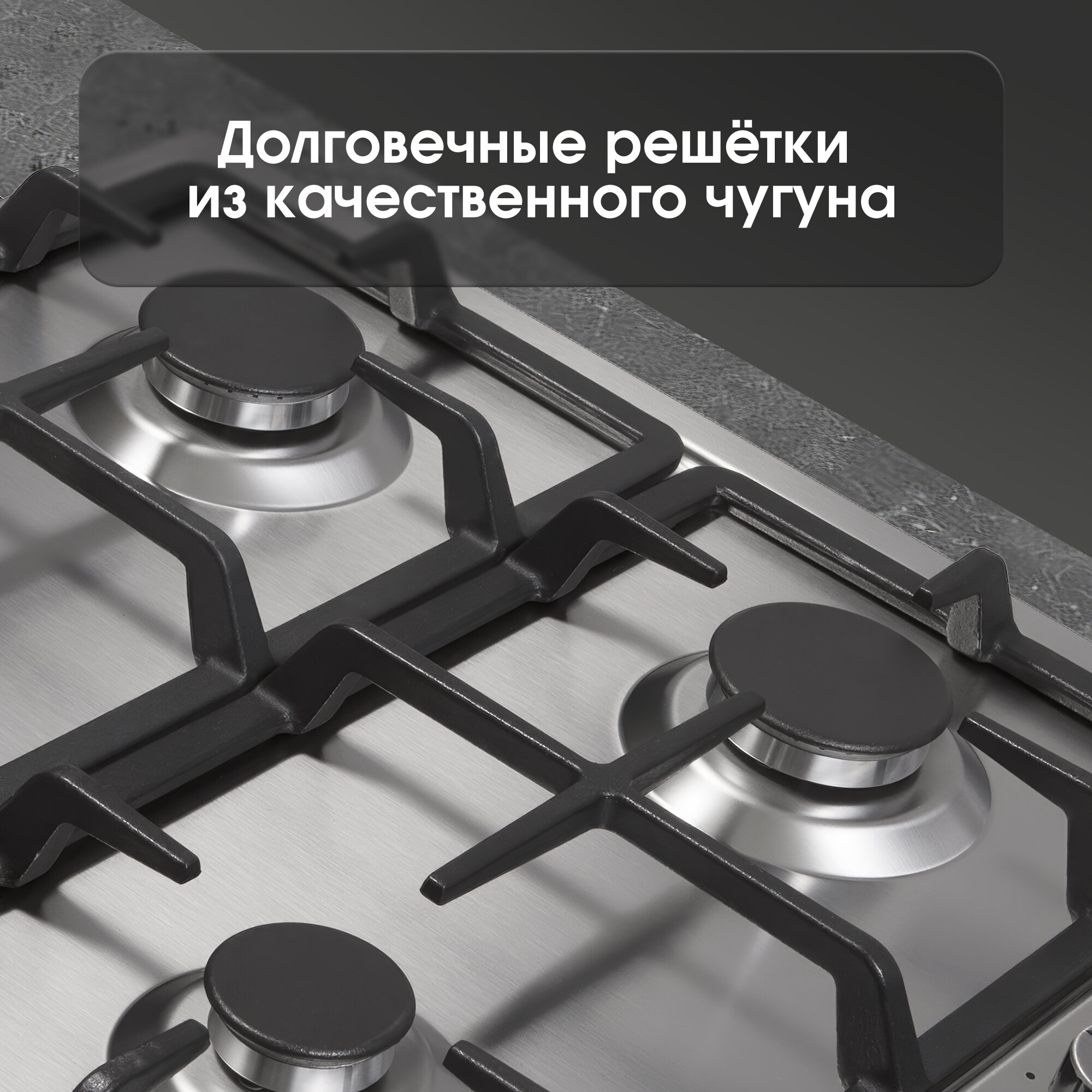 Газовая варочная панель Zigmund & Shtain GN 98.61 S, серебристая, чугунные решетки