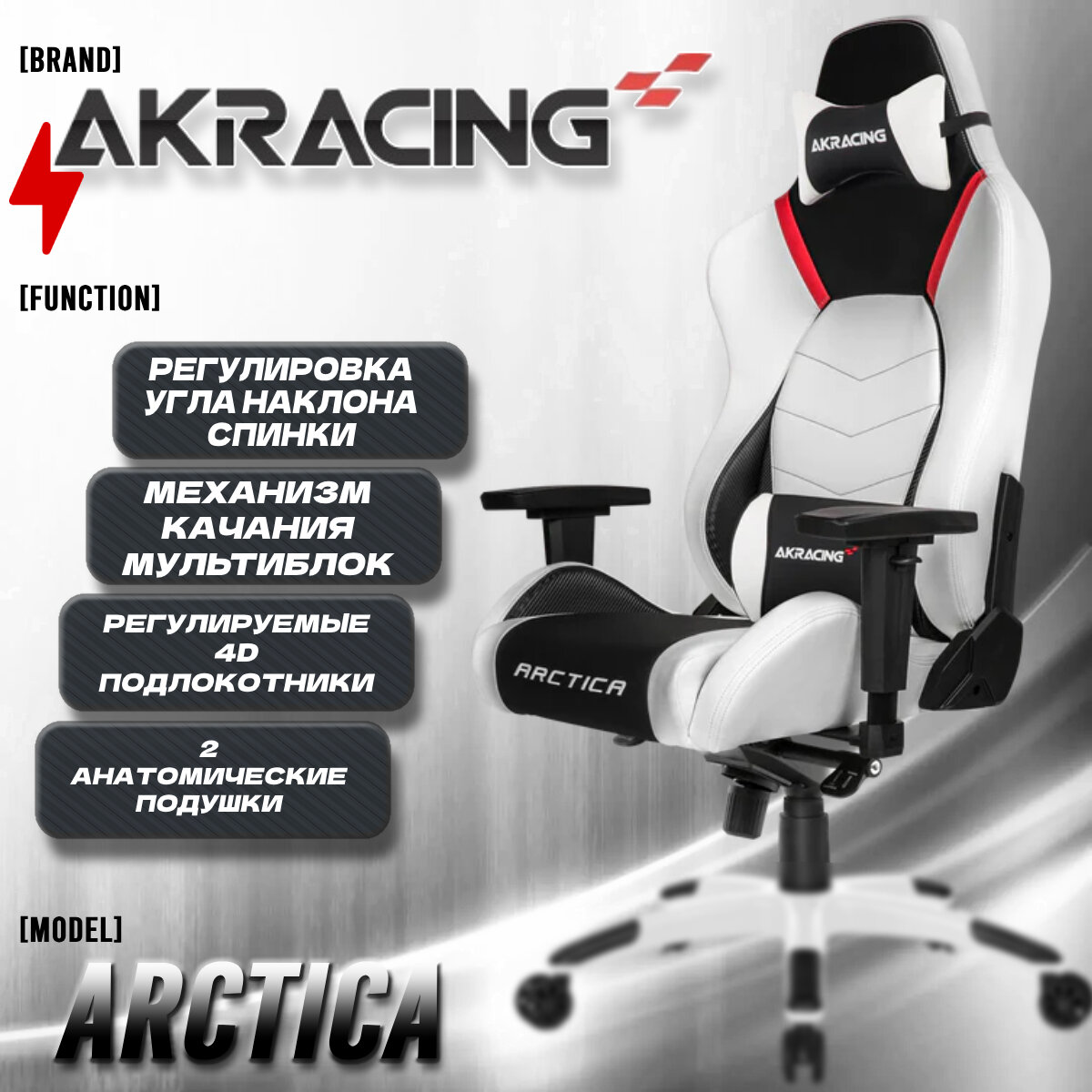 Компьютерное кресло AKRACING Arctica игровое, обивка: искусственная кожа, цвет: черный/белый интересное: