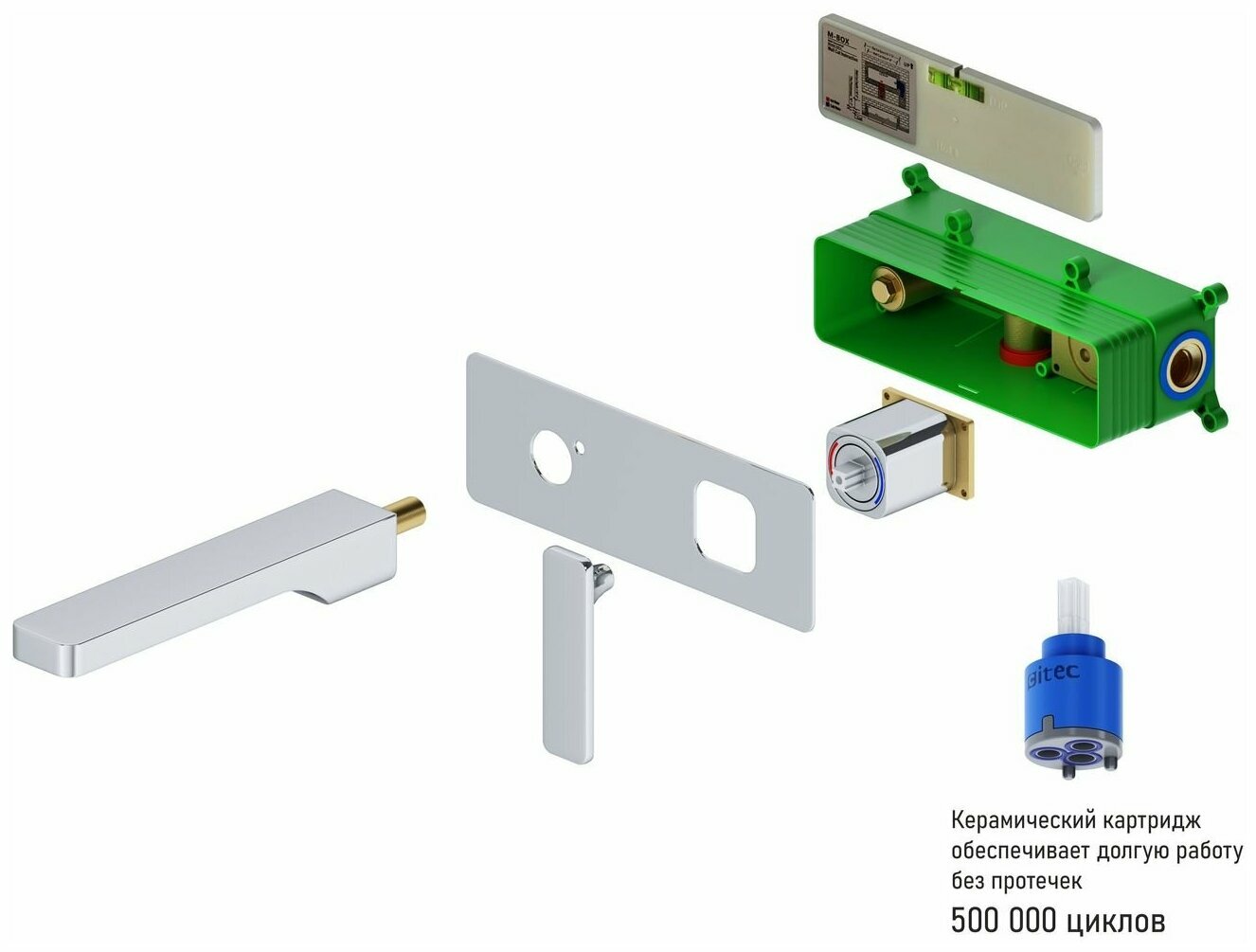 | Комплектация | смеситель - 1 шт., монтажная коробка - 1 шт., излив - 1 шт., декоративная накладка смесителя - 1 шт., ручка смесителя - 1 шт., ключ шестигранный - 1 шт., инструкция - 1 шт. |
