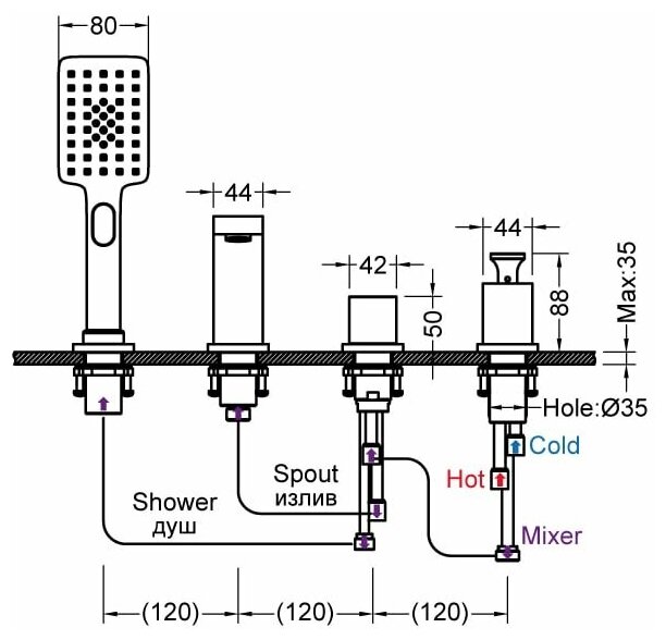 | Тип устройства | смеситель на борт ванны |