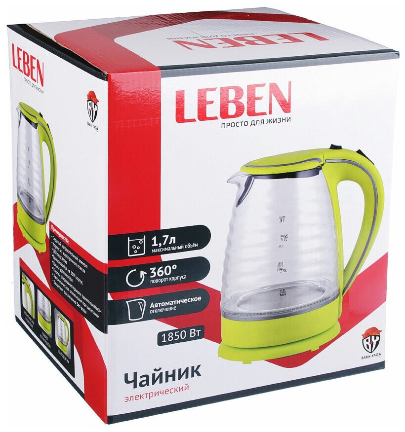 Ниже Вы можете прочитать отзывы на LEBEN Чайник электрический 1,7л, 1850Вт, скрытый нагр.элемент, стекло, рифлёное стекло 475-133, ознакомится с подробными характеристиками, посмотреть интересные обзоры и фотографии на LEBEN Чайник электрический 1,7л, 1850Вт, скрытый нагр.элемент, стекло, рифлёное стекло 475-133.