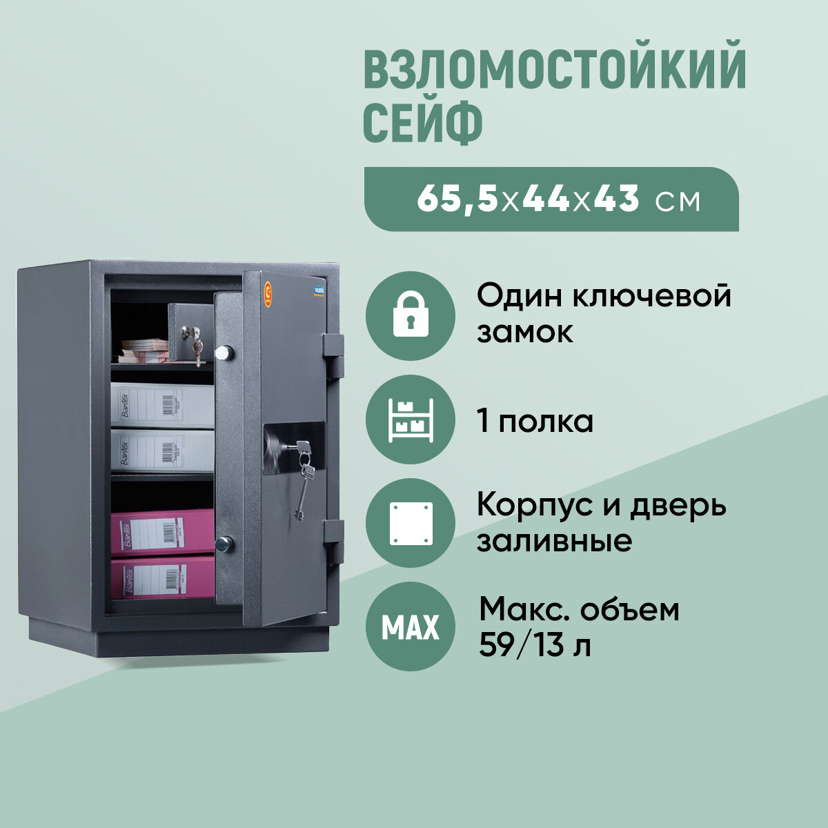 Сейф VALBERG "КВАРЦИТ" 65T, офисный, ключевой замок, огнестойкий, 1 млн рублей