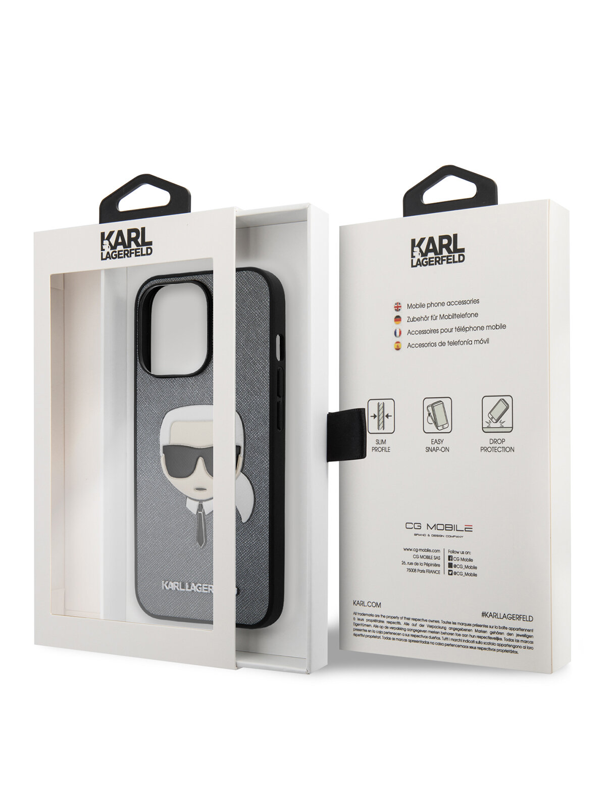 Чехол CG Mobile Karl Lagerfeld PU Saffiano Karl's Head Hard для iPhone 13 Pro, цвет Серебристый (KLHCP13LSAKHSL)