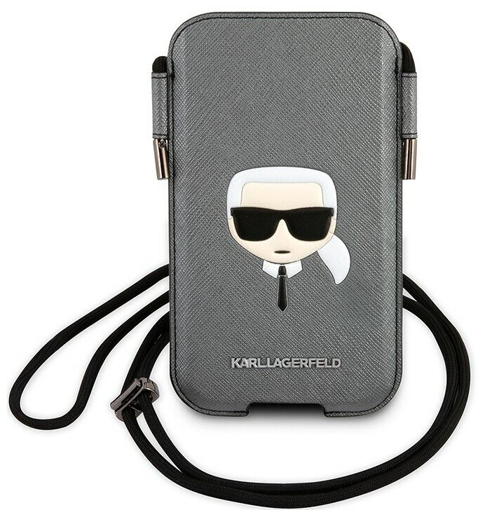 Купить Чехол-карман Karl Lagerfeld для смартфонов Pouch PU Saffiano Karl's head Silver (L-size)
