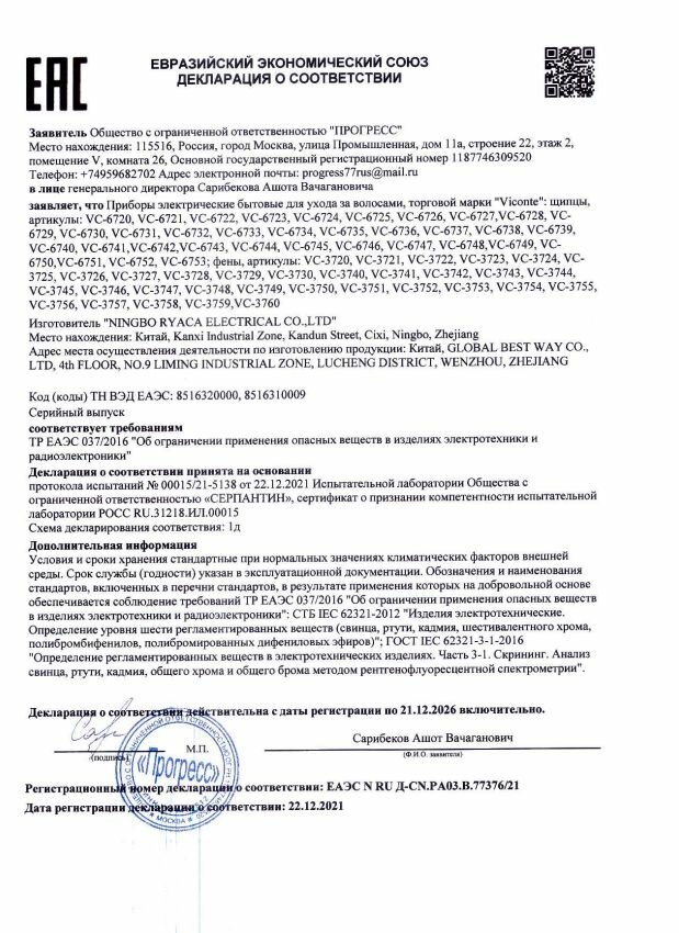 СохранитьФен VICONTE VC-3748 малиновый интересное: