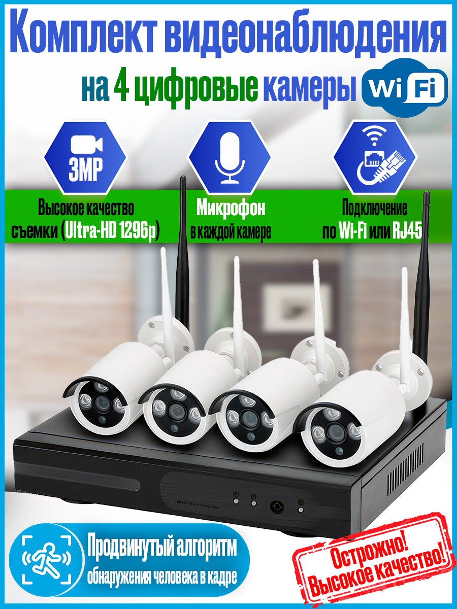 Цифровой комплект wifi видеонаблюдения на 4 камеры со звуком для улицы и помещений Micam HiSecurity White 3Mp 4CH интересное: