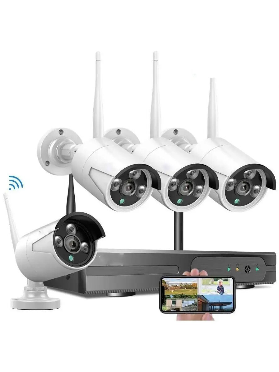Купить Цифровой комплект wifi видеонаблюдения на 4 камеры со звуком для улицы и помещений Micam HiSecurity White 3Mp 4CH