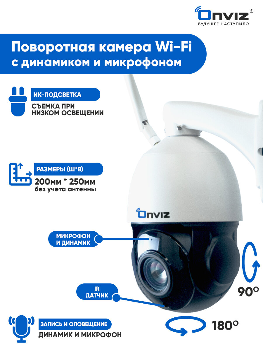 Уличная поворотная Wi-Fi IP камера видеонаблюдения Onviz U11 с оптическим увеличением зумом / беспроводная / наружная / для дома / для дачи интересное: