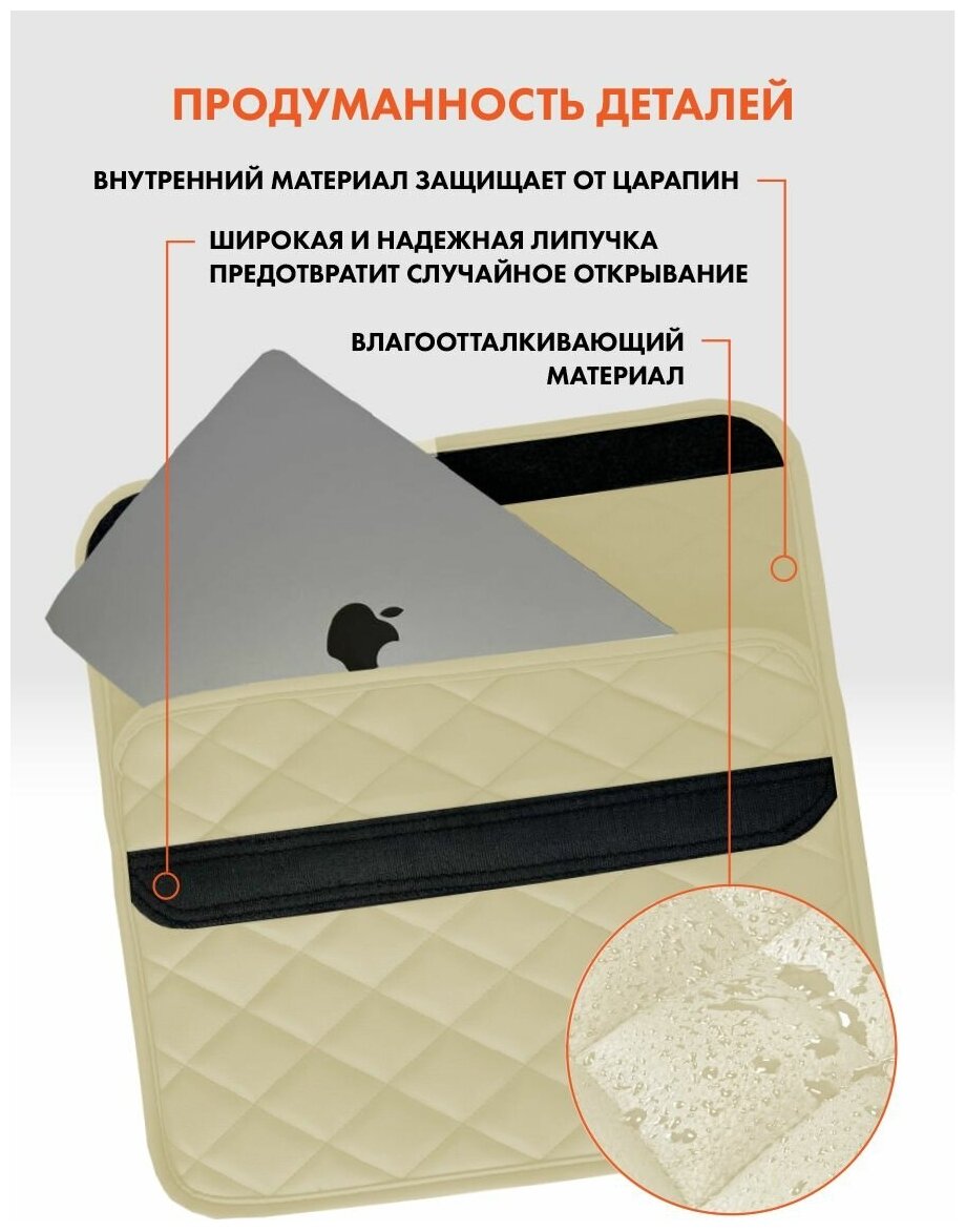 Сумка-чехол TROKOT для ноутбука или планшета 15", папка для документов, Материал: Экокожа, Цвет: Бежевый интересное: