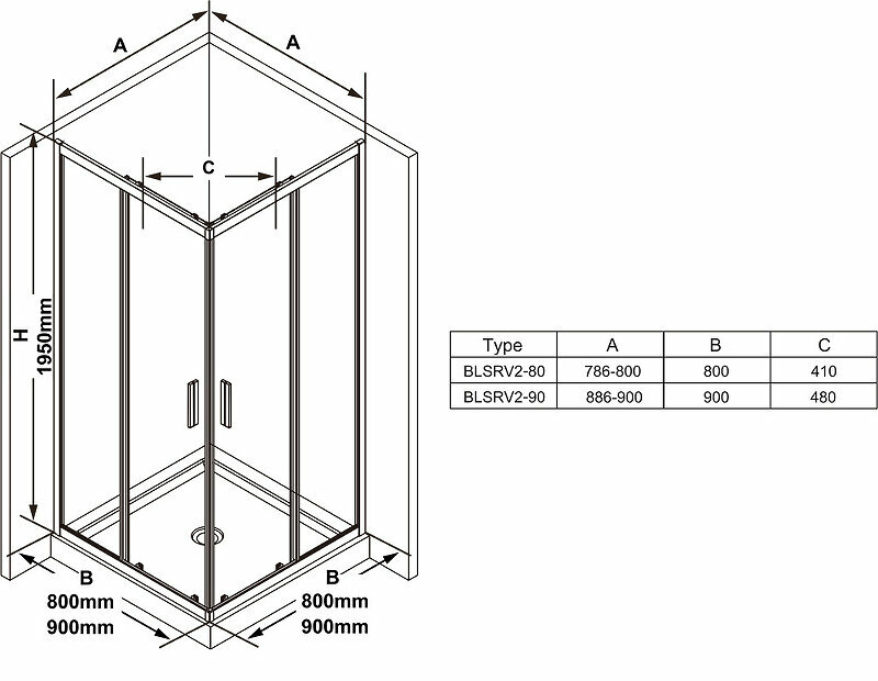 Купить Душевой уголок Ravak Blix Slim 80x80 BLSRV2-80 X1LM40300Z1 профиль Черный стекло Transparent