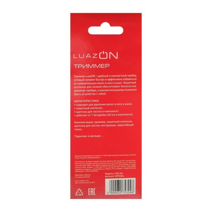 Триммер (LUAZON HOME LTRI-03 Триммер 3575324)