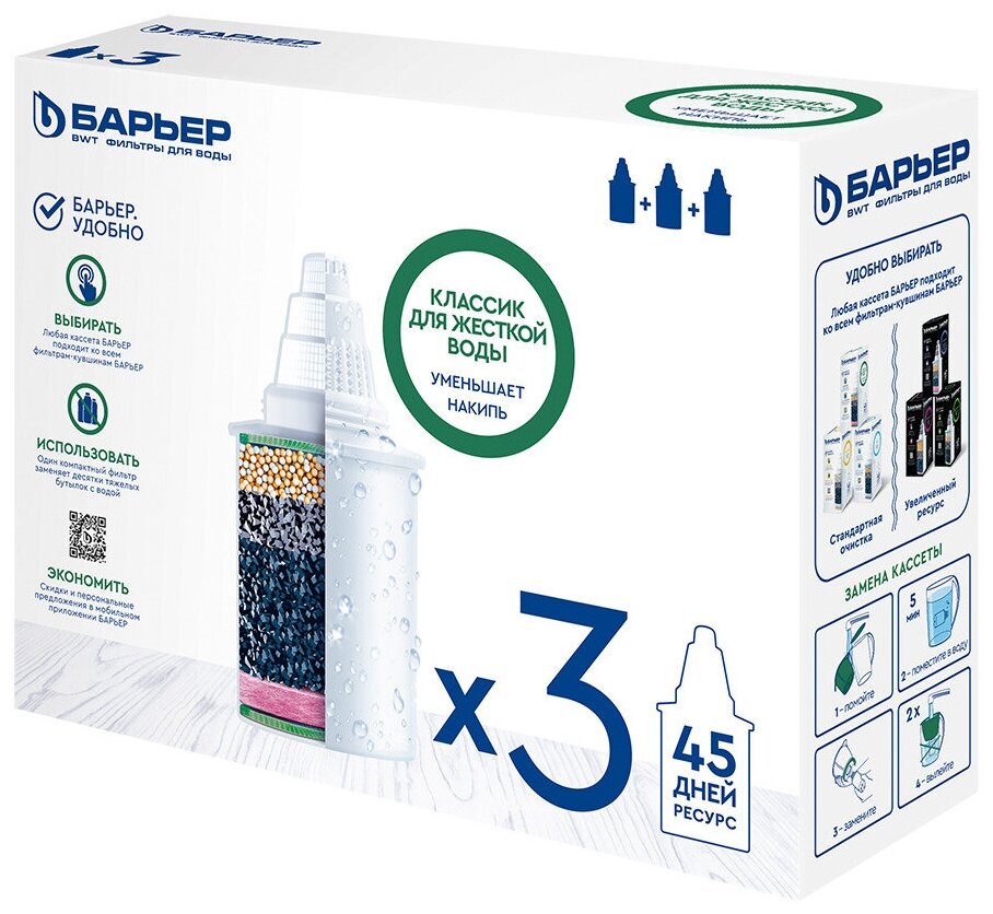 Комплект сменных кассет Барьер Классик для жесткой воды (x3) интересное: