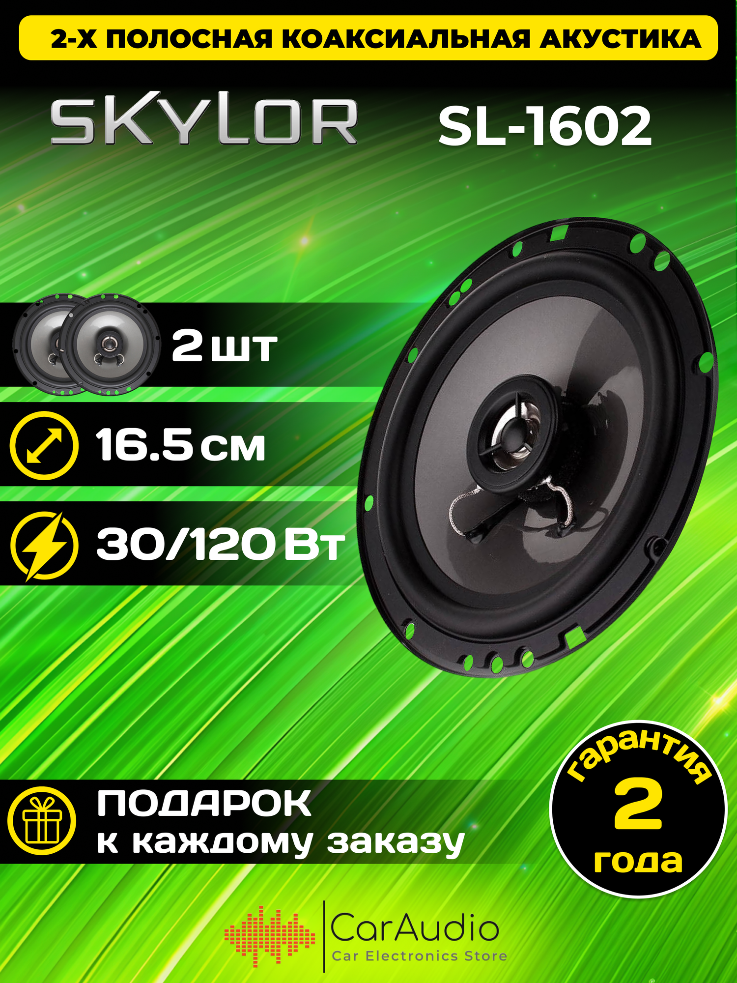 SKYLOR SL-1602 2-х полосная коаксиальная акустика 16,5 см (пара)