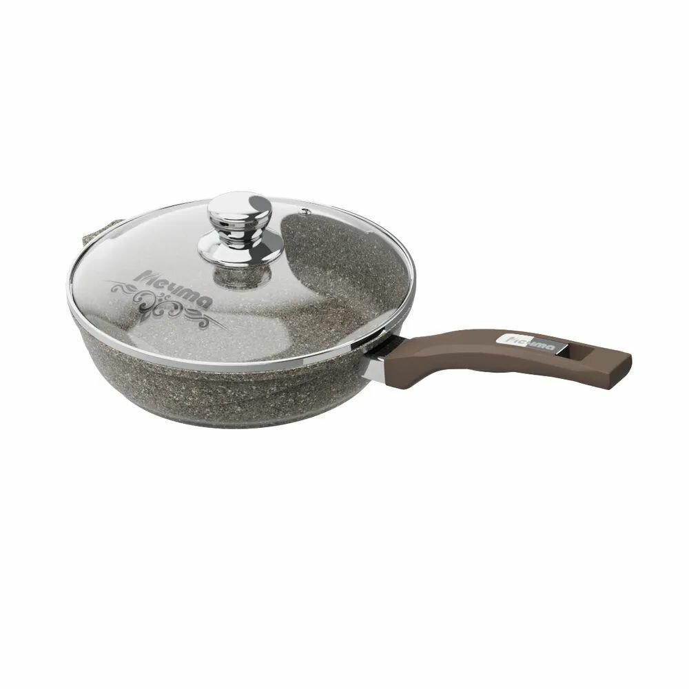 Купить Сковорода 28см с покрытием Premium mokko, с несъемной ручкой и стеклянной крышкой с28 902 .