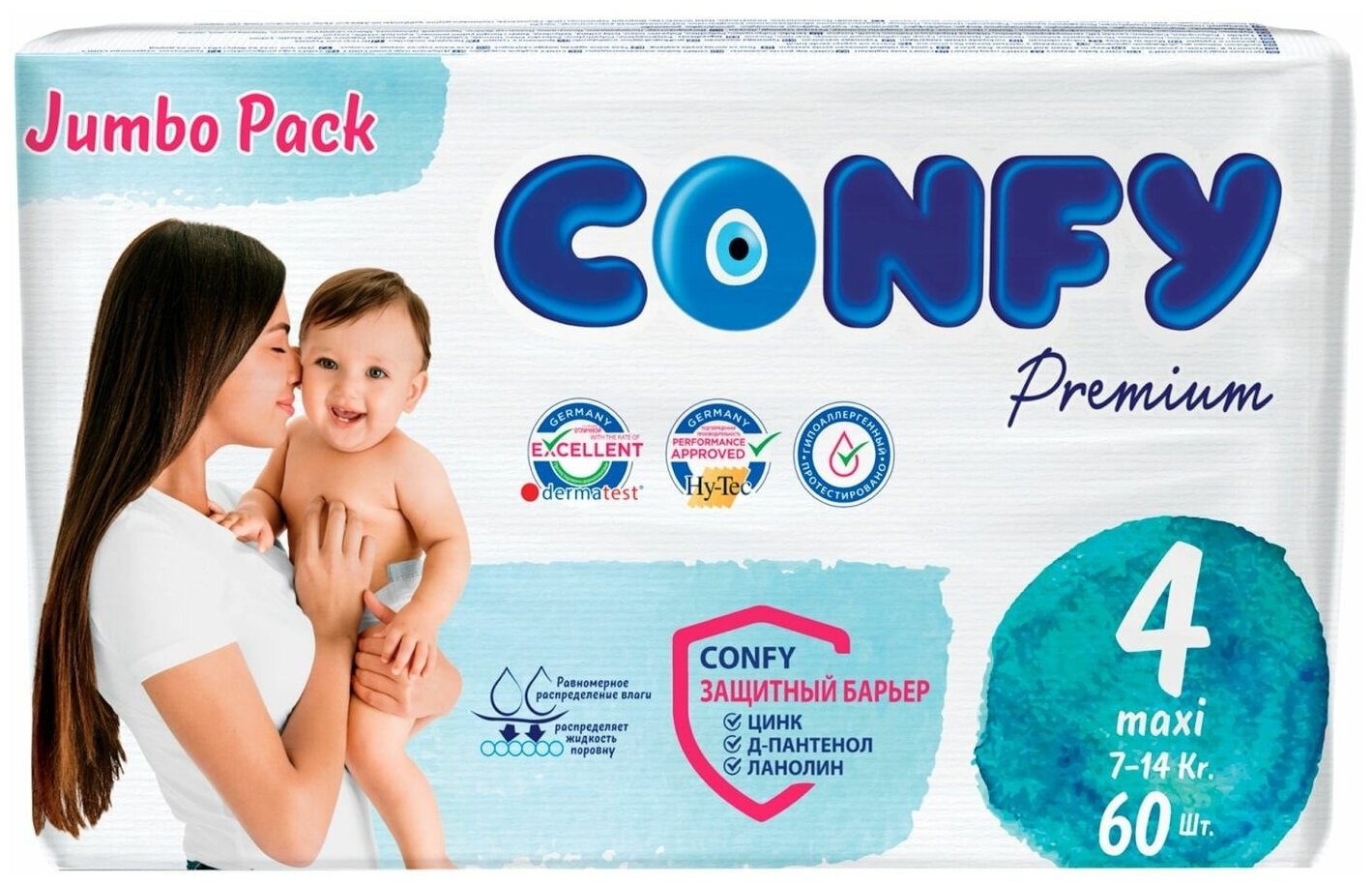 Подгузники Premium Jumbo Размер 4 7-14кг 60шт интересное:
