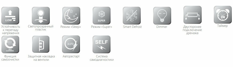 | Особенности | дисплей / индикация работы / пульт ДУ / регулировка направления воздушного потока / таймер включения/выключения / Автоочистка / Автоочистка / Авторестарт / Авторестарт / Антикоррозийное покрытие / Антикоррозийное покрытие / Предотвращение образования плесени / Скрытый дисплей / Скрытый дисплей / Таймер включения / Таймер включения / Таймер выключения / Таймер выключения |