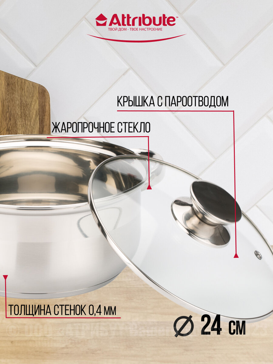 Кастрюля ATTRIBUTE STEEL CLASSIC 24см