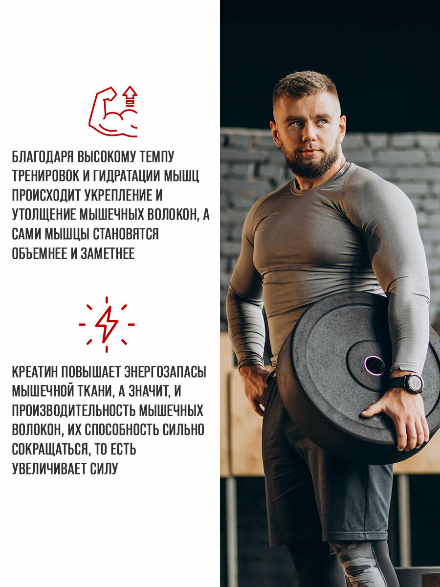 | Плюсы: | - Задерживает воду в мышцах, что приводит к росту массы тела и наполненности самих мышц.