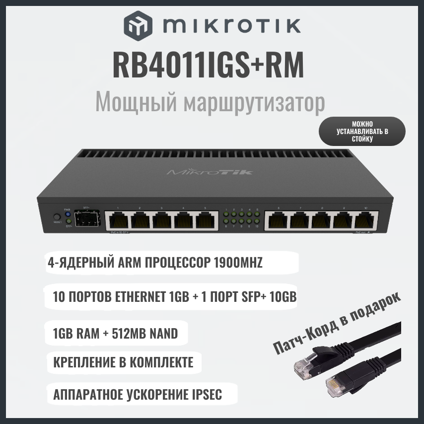 Ниже Вы можете прочитать отзывы на Маршрутизатор MikroTik RB4011iGS+RM, ознакомится с подробными характеристиками, посмотреть интересные обзоры и фотографии на Маршрутизатор MikroTik RB4011iGS+RM.