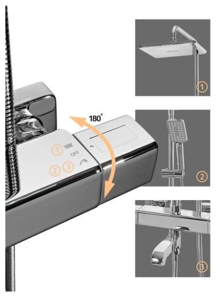 | Плюсы: | Красивая душевая система. Имеется термостат. |