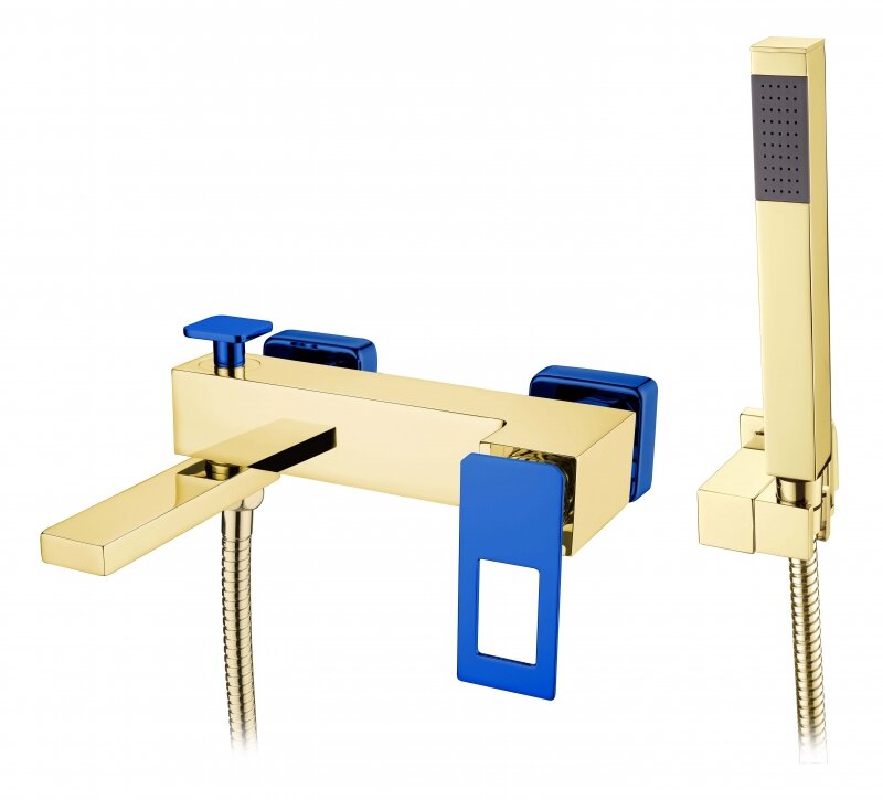 Купить Смеситель для ванны Boheme Q 143-GUV с душем, золото/ультрамарин