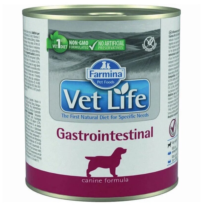 Корм Farmina Vet Life Natural Diet Gastrointestinal паштет диета для собак 0,3 кг цена за х1шт. интересное: