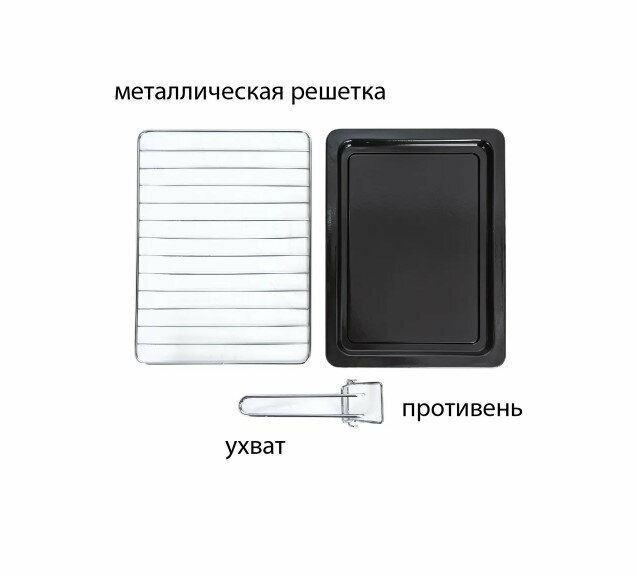 | Комплектация | вертел / держатель для противня/решётки / противень / решётка / ухват |