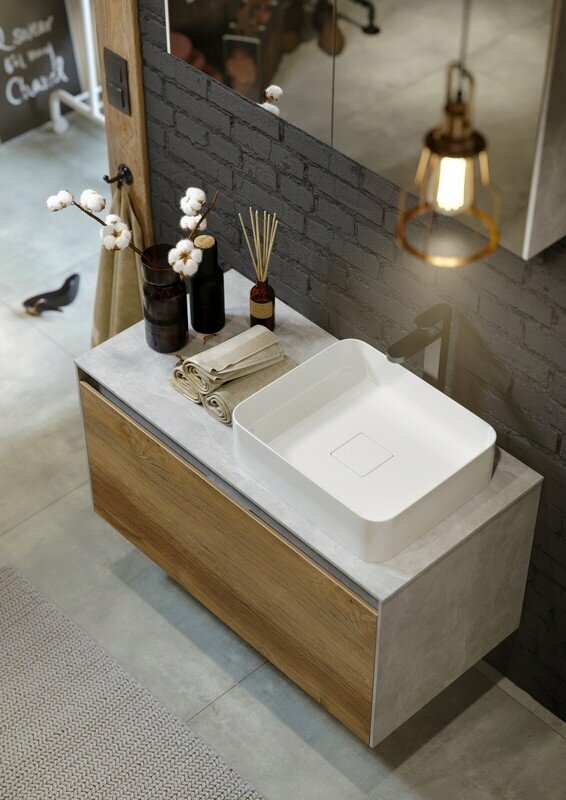 Тумба-умывальник Comforty Осло 80 бетон светлый с раковиной Fest 80