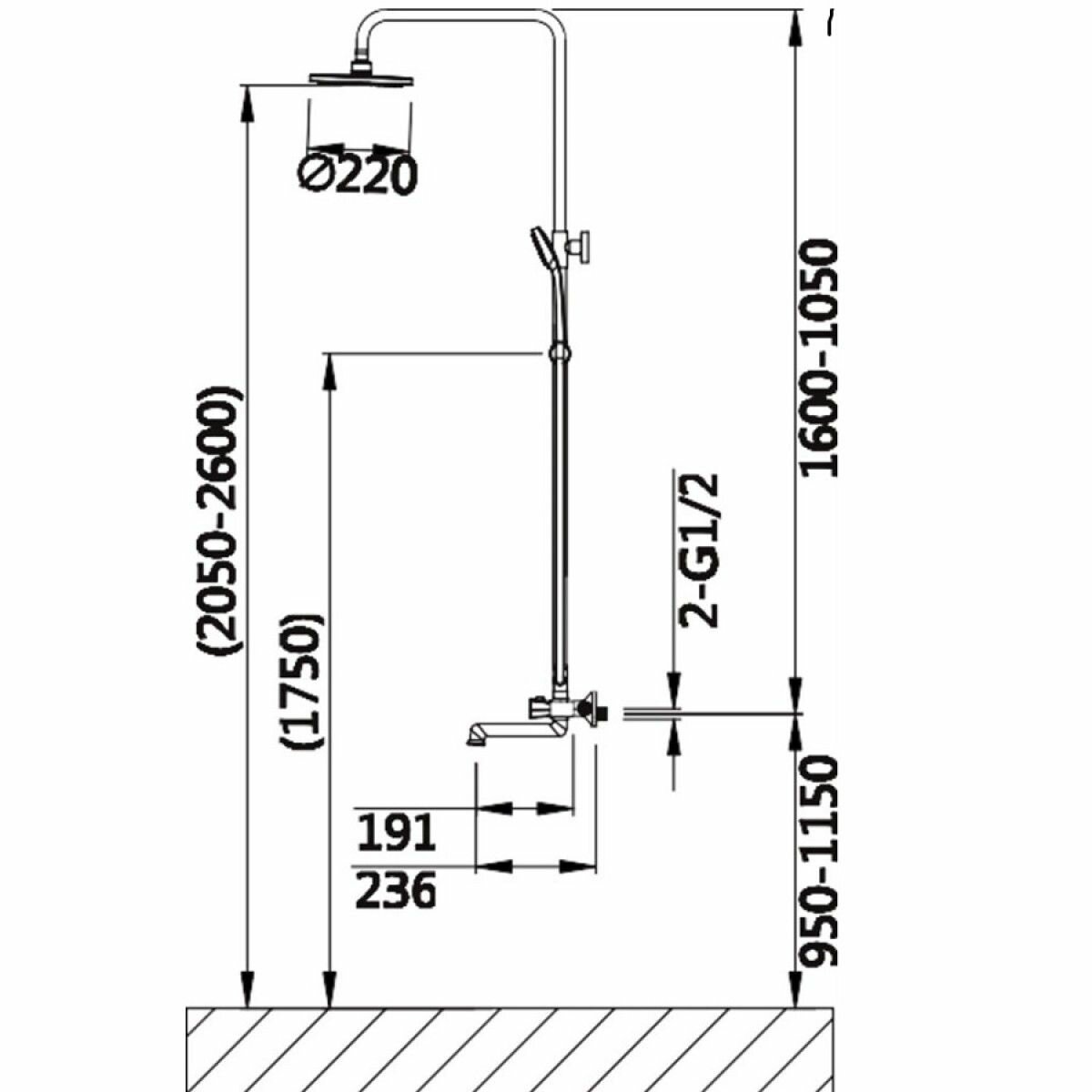 | Форма верхнего душа | круглая |