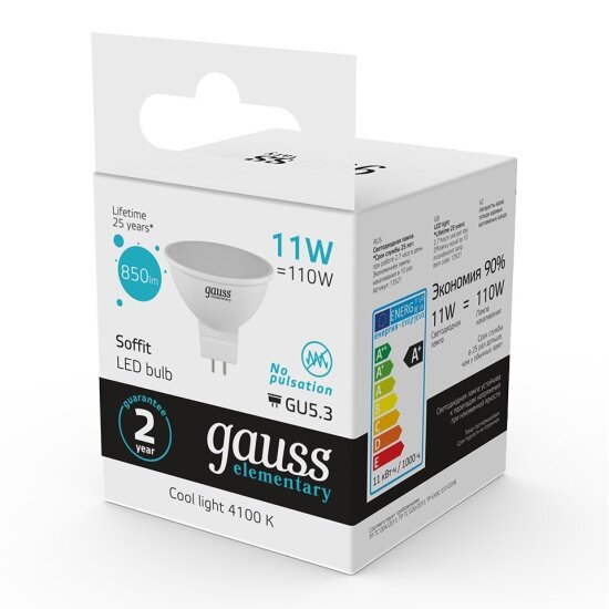 Ниже Вы можете прочитать отзывы на Светодиодная лампа Gauss Elementary MR16 11W 850lm 4100K GU5.3 LED 1/10/100, ознакомится с подробными характеристиками, посмотреть интересные обзоры и фотографии на Светодиодная лампа Gauss Elementary MR16 11W 850lm 4100K GU5.3 LED 1/10/100.