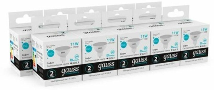 Лампа Gauss Elementary MR16 11W 850lm 4100K GU5.3 LED 13521 (5 шт)