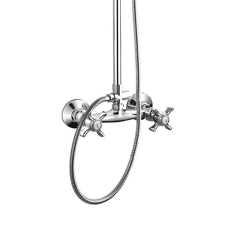 | Комплектация | душевая стойка / верхний душ / кронштейн для верхнего душа / держатель лейки / душевая лейка / душевой шланг 1,5м. / крепления / отражатели / эксцентрики. |