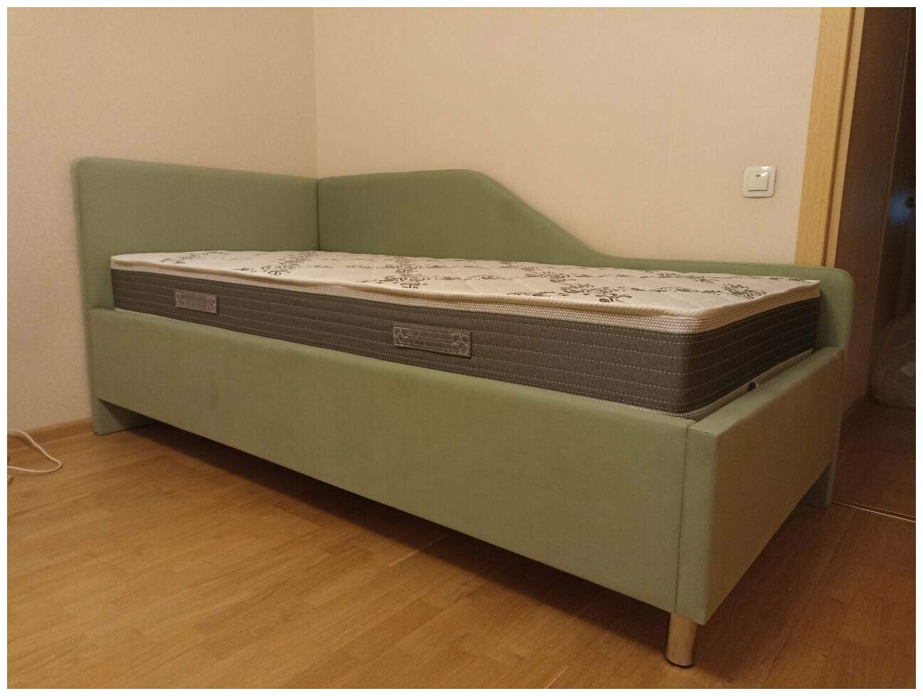 Кровать угловая односпальная, тахта, софа Муза 90x190, подъемный механизм, бельевой ящик, мягкая боковая спинка, ножки под робот пылесос, правый угол