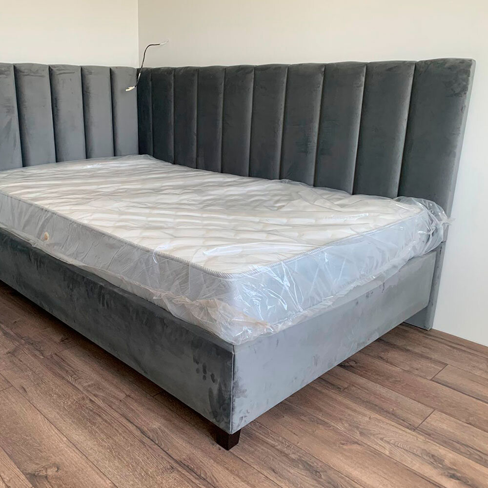 Кровать с матрасом Роза Серая Велюр 160х200