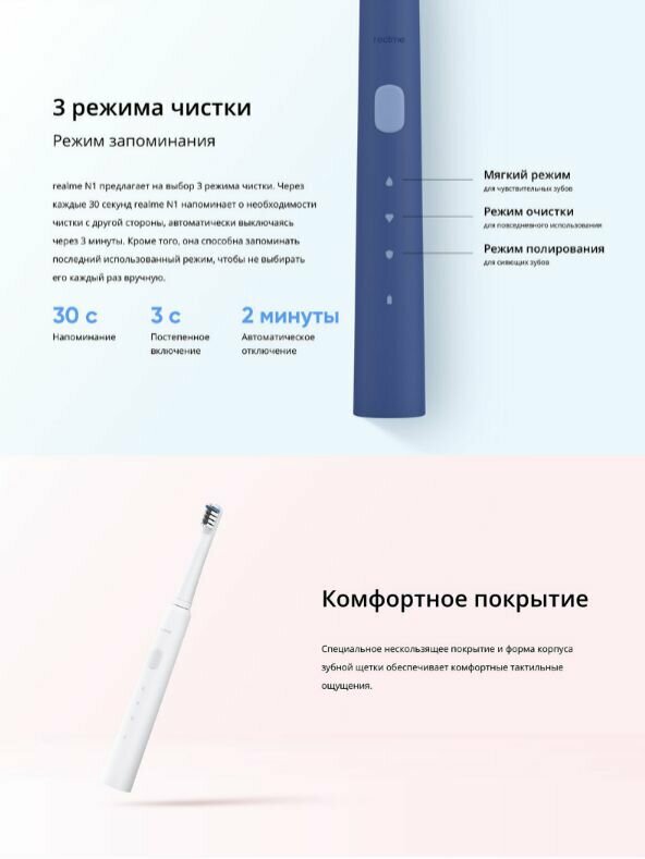 Электрическая ультразвуковая зубная щетка Realme N1 Sonic Electric Toothbrus синяя интересное:
