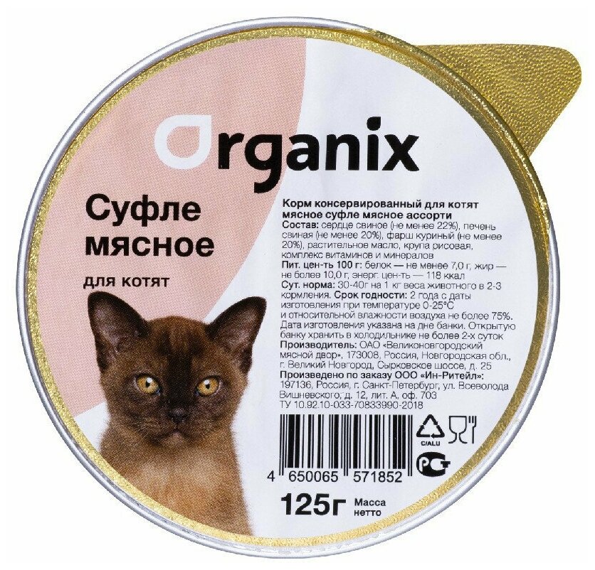 Organix консервы суфле для котят мясное ассорти - 125 г х 16 шт интересное: